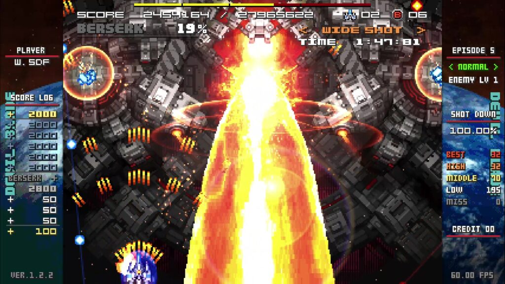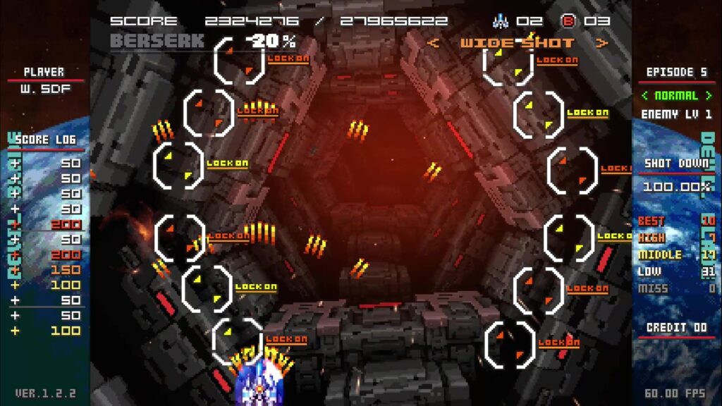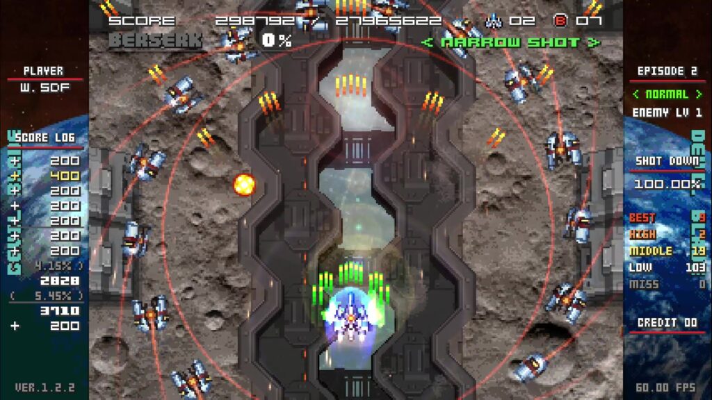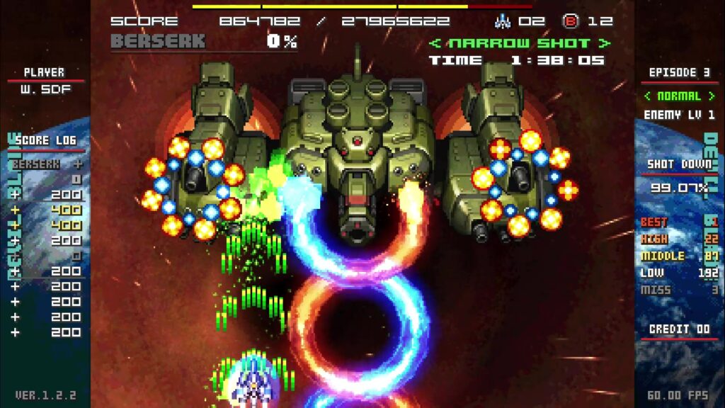 とにかくボムの仕様が優しく、特に「シールドが剥がれたらすぐにボム」でシールド補充されるNORMAL以下ではなかなか自機が堕ちない。自機の性能も強い!とは思わないが、丁度よい火力に緊急回避に・・と特に不足を感じない程度のスペックは持っている。総じて優しく、それでいて一定の歯応えも提供する近代的stgに仕上がっている。
