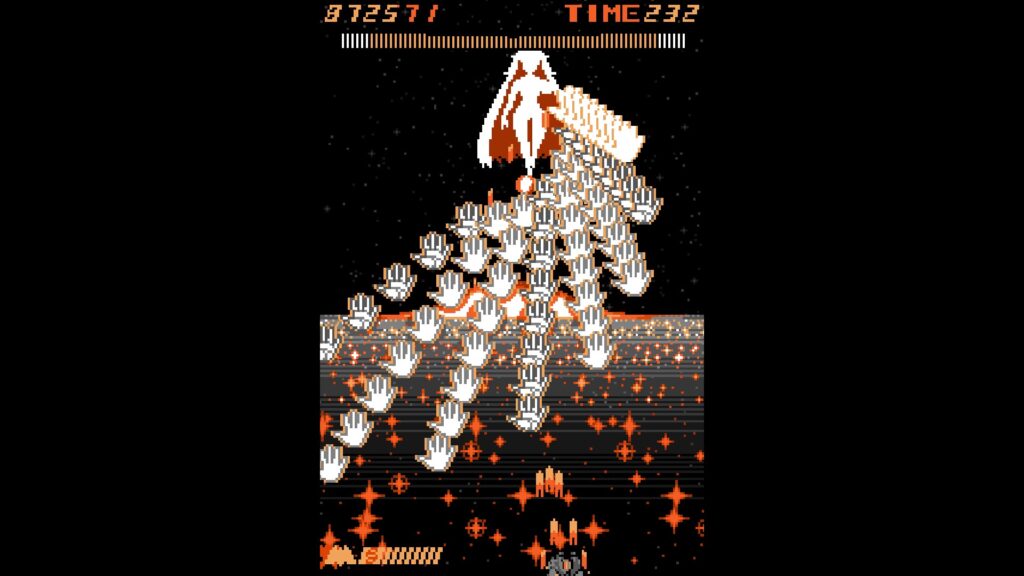 そこまで硬くないボスが多いため耐える時間が短い。前述の弾消し溜め撃ちによる持久戦も有用に働く都合上、私的には道中よりリラックスしてこなせると感じた。しかしボス自体の殺意は最初から結構あるため弾消し要素が使えない序盤は逆に辛いと感じるかも。2周目も2周目で全く新しいボスが各面1体ずつ追加されてるしラスボスもかなり硬い上に攻撃の激しさが格違いなため、ボス攻略にも手を焼かされるだろう。